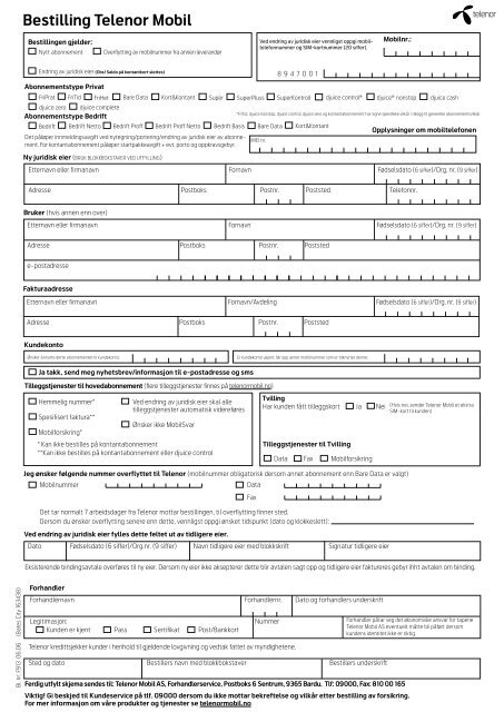 Bestill nytt mobilabonnement eller ring kundeservice på nummer 915 09000. Fremtidsfullmakt Skjema I 2021. Send brev til domstolen og be om offentlig skifte.