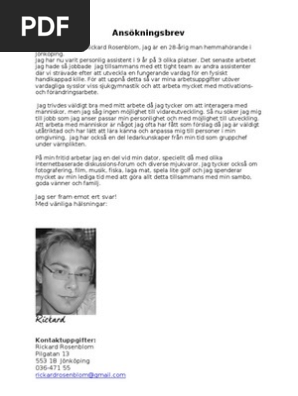 Kika gärna in den och läs mer om vad som är viktigt att tänka på när du skriver ett personligt brev. Nya jobb idag 28. Du ansöker till tjänsten genom att klicka sök denna tjänst där du fyller i dina uppgifter och bifogar CV och personligt brev.