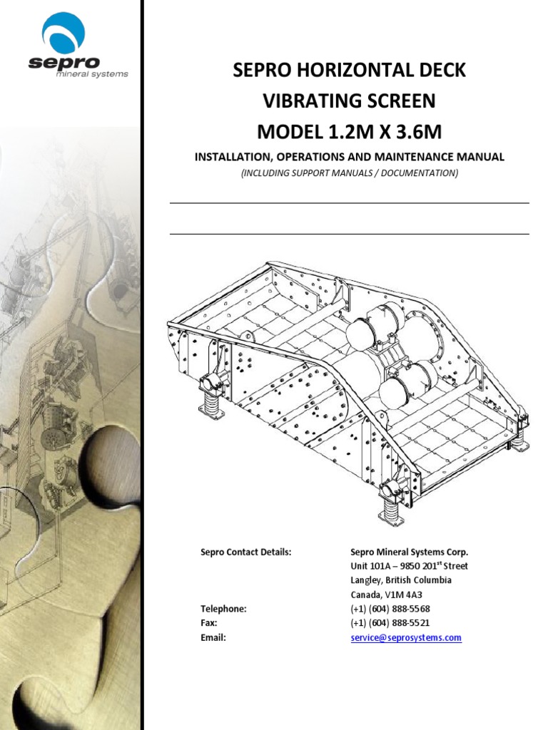 Sepro Horizontal Deck Vibrating Screen 1 2x3 6 Compiled Complete Pdf Elevator Screw