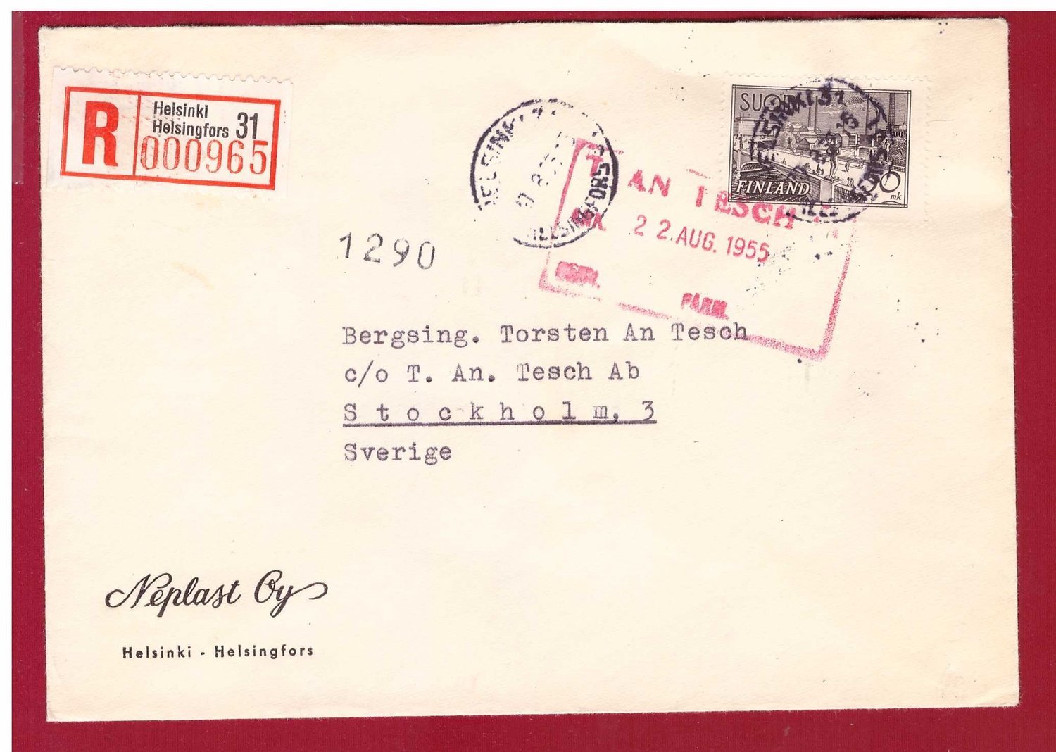 50mk Rek Brev Till Sverige Helsinki 20 8 55 Kop Fran Samlartorget Pa Tradera 309154592