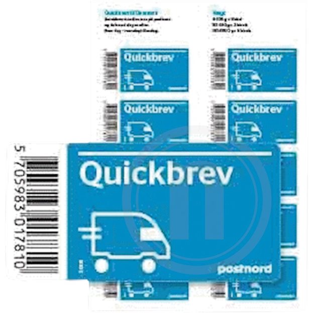 Quick and traceable with Online Porto. Portoen for Quickbreve er inkl. Quickbreve frankeres med frankeringsmærker som købes på posthuset eller portokoder købt i Online Porto på wwwpostnorddk eller i PostNord Appen.